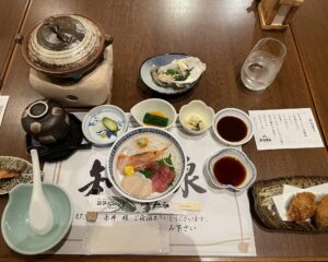 夕食は、知内が誇る海の宝物「牡蠣」を中心とした料理に舌鼓。