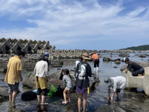 日本海側の磯場へ足を伸ばし、岩陰に隠れた生きものを探します。