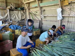農家5代目の冨田さんの畑では、旬のネギやとうもろこしの収穫に挑戦。