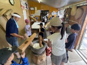 「よいしょー!」という掛け声とともに、杵と臼でつくお餅。つきたての柔らかな感触と、農家の暮らしに溶け込む心地よさ。ここには、都会では忘れかけられている「隣り合う暮らし」がありました。